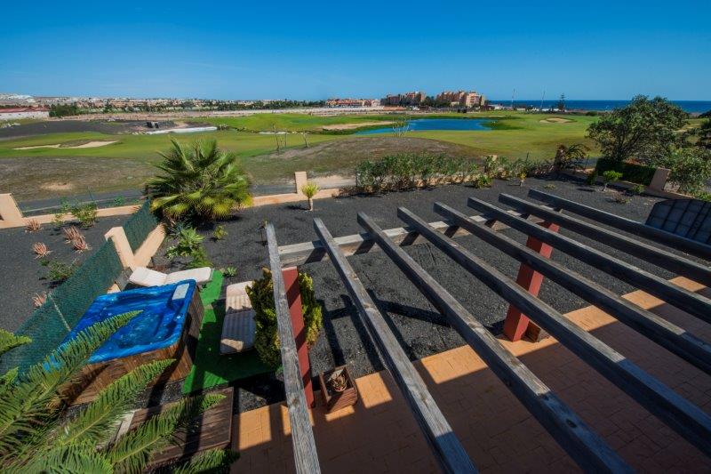 Wonderful villa in typical Canary-Islands-style building. Area of 800 square meters, 200 square meters composed as follows: 1 large central lounge room with 4 bedrooms, 4 bathrooms, kitchen and access to the outside under a beautiful patio where there is a jacuzzi. The villa overlooks the golf course, walking you reach the famous beach of Caleta de Fuste and it is close to shopping centers, casino, cinemas, schools and sport areas. From the villa you can enjoy an impressive view of the sea and of the nature that surrounds the area. The villa is fully furnished as shown in the pictures. - One of the place where to be.