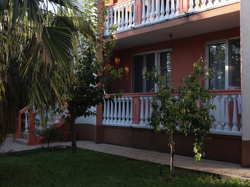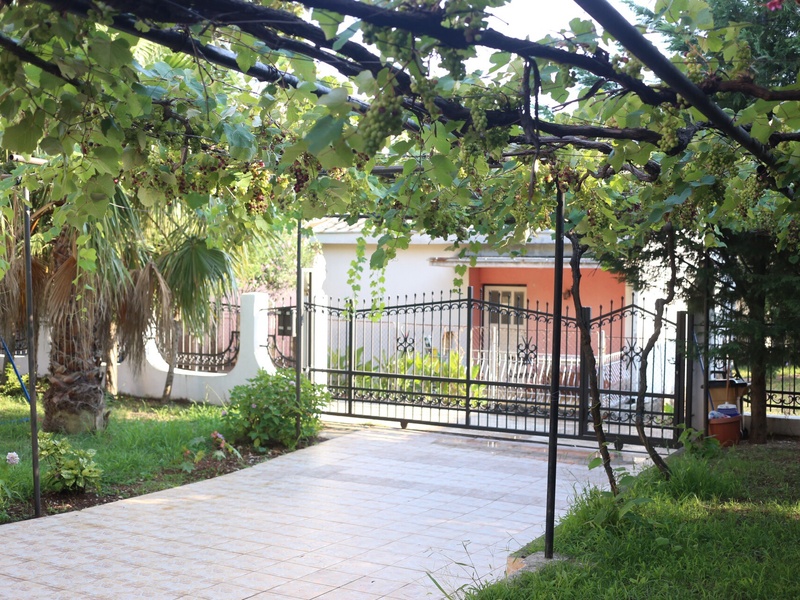 садом ,виноград и плодовые деревья, груши, черешня, хурма . Дворовая территория ухожена и оснащена современной системой полива . У дома есть площадка с зоной для отдыха , парковка для 2 машин . Вода централизованная, отличного качества, горячая от системы солнечного обогрева , система современная . Есть где поставить бассейн в том числе стационарный. Дом хорошо сдается в сезон с июня по октябрь. Рядом , 5 минут ходьбы супермаркеты, аптеки, кафе , рестораны . Дом находится ниже главной дороги, поэтому шума от машин нет, воздух чистый. Вообще тихое и прекрасное место . До города Бар на авто или автобусе 10 минут , до аэропорта Тиват или Подгорица 40 минут . Соседи доброжелательные . Идеален для семей с детьми .
