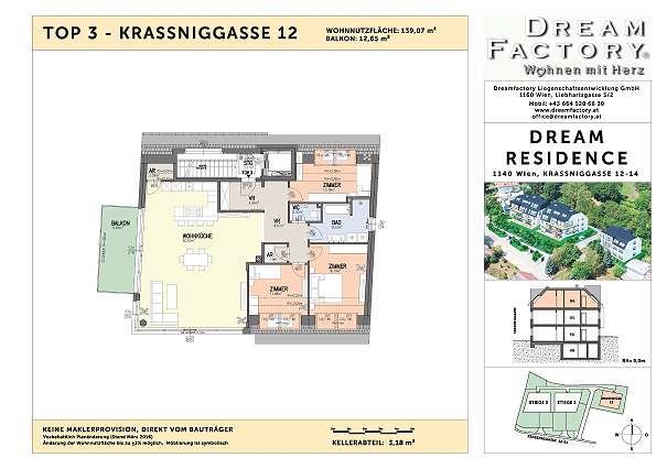 Flat for sale in a new building in Vienna, the federal capital of Austria and also one of the nine federal provinces of Austria, is located inside the other land, Lower Austria. Address: Kraßniggasse 12/3 1140 Wien, 14. Bezirk, Penzing Wien. The apartment has 139 m², 4 rooms, heating, parquet floors, elevator, garage, cellar, parking, balcony with a total area of 13 m². Beautiful views. Luxury equipment: private swimming pool, geothermal underfloor heating, air conditioning, alarm system, central control, etc. Elevator, underground parking, bicycle storage room, basement. PERFECT APPEARANCE: entrance hall with cloakroom Large living room 60m² with open kitchen, bedroom with en-suite toilet and shower separate utility room. A special highlight are the spacious terraces, balconies and their own gardens - all facing south or west - to expand the personal comfort for private green oases. All apartments are equipped with high quality oiled oak parquet, which provide a comfortable oschuschenie.Dlya more information please contact us on line.