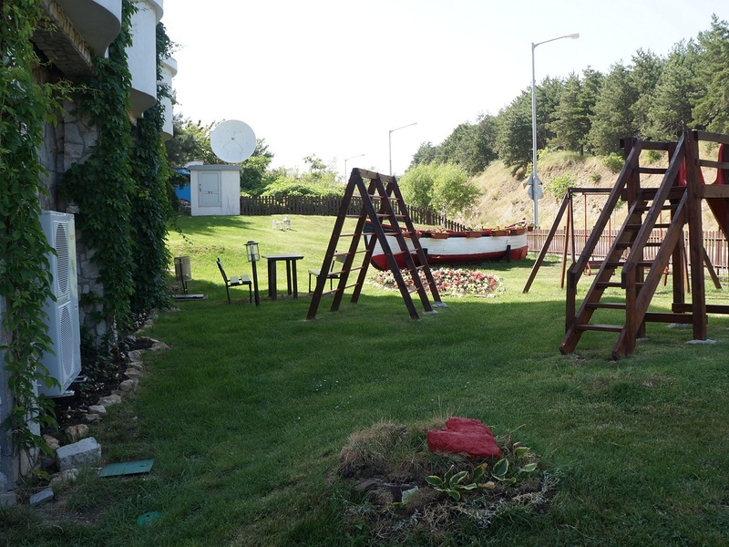 Der Komplex ist mit üppigen Grünflächen angelegt und verfügt über Swimmingpool für Kinder und Erwachsene, Restaurant, Kinderspielplatz, Fahrstuhl und bewachten Parkplatz.