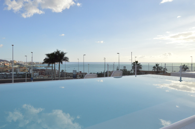 For sale is a two-room apartment in Adeje, a municipality in Spain, is part of the province of Santa Cruz de Tenerife as part of the autonomous community of the Canary Islands. Is on the island of Tenerife. One-bedroom apartment with private pool. Incredible apartment for sale in Baobab Suites, with a modern design in the heart of El Duque. These apartments with panoramic sea views and very practical layout are located on one floor and very bright. With an open-plan kitchen, a spacious living room, a patio, 2 bedrooms, each with its own bathroom. Both bedrooms have built-in wardrobes. Air conditioning in all rooms. Thanks to the patio, there is plenty of light, you can open and close the patio windows and the electric roof to create a more cozy or open living space. The outside terrace is very large, with a private pool and even a beach. The total area of the apartment is 96 square meters. The terrace has 28 square meters. M ..