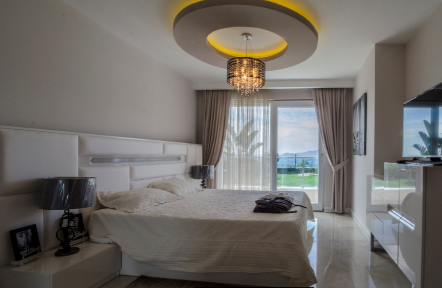Остальные 3 спальни находятся на втором этаже. Роскошная главная спальня с впечатляющей ванной комнатой и гардеробной. Все спальни на втором этаже с панорамными окнами от пола до потолка, террасой-балконом.