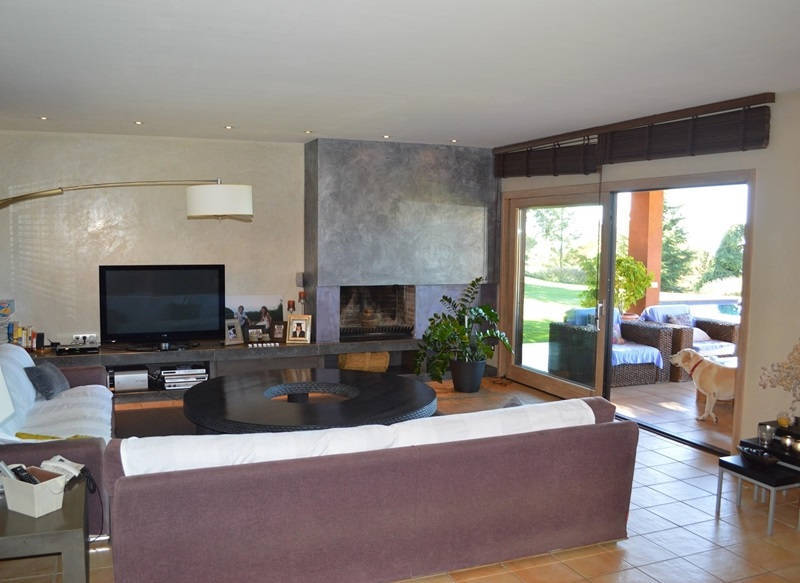 Просторная гостиная со столовой и выходом на террасу и в сад к переливному бассейну 12х4, оборудованная и полностью экипированная кухня с островом, три супружеские спальни с ванными комнатами, ещё одна спальня, ванная комната и кабинет, прачечная.