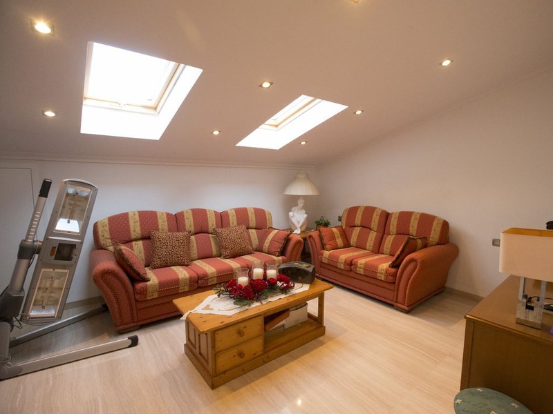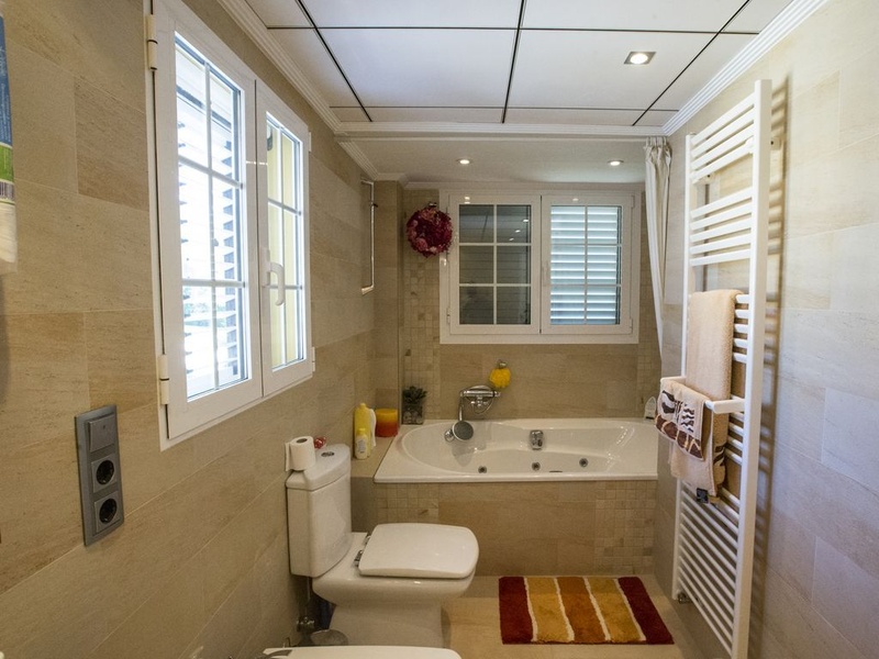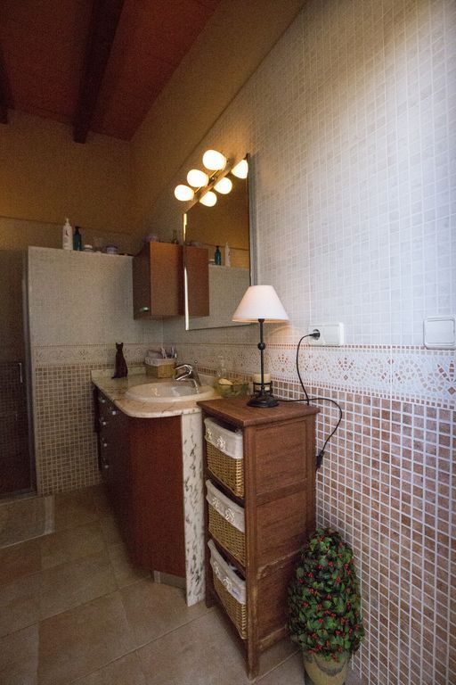 Просторная современная двухэтажная вилла, расположена в красивом пригородном поселке, в окружении природы. На нижнем этаже находится полностью укомплектованная кухня, просторная гостиная с отдельно расположенной обеденной зоной, рабочий кабинет, 1 двухместная спальня и 2 ванные комнаты. На верхнем этаже имеется 6 просторных двухместных спален, две из них используются как мансардная комната и гардеробная и 3 ванные комнаты, одна из них с джакузи. В спальнях, на всех окнах установлены майоркинские оконные алюминиевые ставни и москитные сетки. Дизайн фасада дополняет великолепный балкон на верхнем этаже здания, с которого открываются великолепные виды.