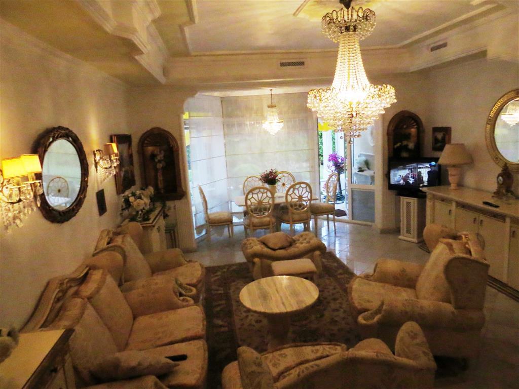 All soft furniture, built-in wardrobes and decorative elements - VERSACE. Chandeliers and lamps - from Italy. Furniture in the office - natural wood, TV plasma.
