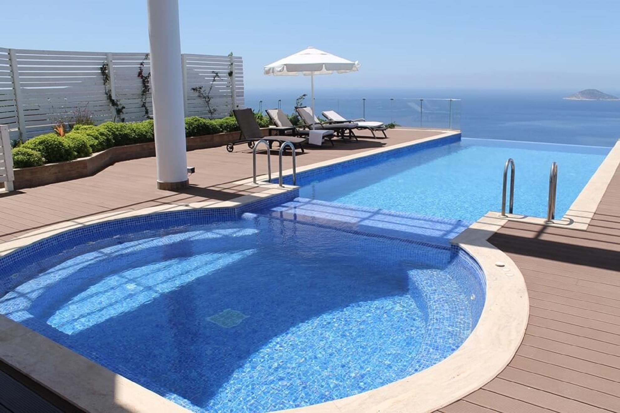 Built in 2015, this villa is one of three replica designs, each with their own touch of personality and individuality above Kalamar area of Kalkan.
