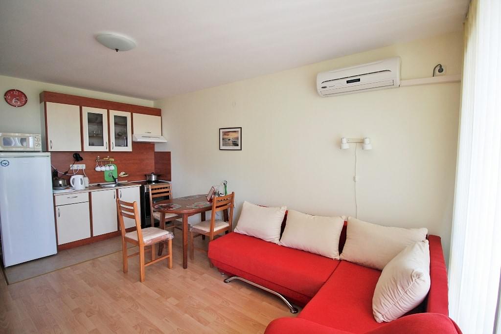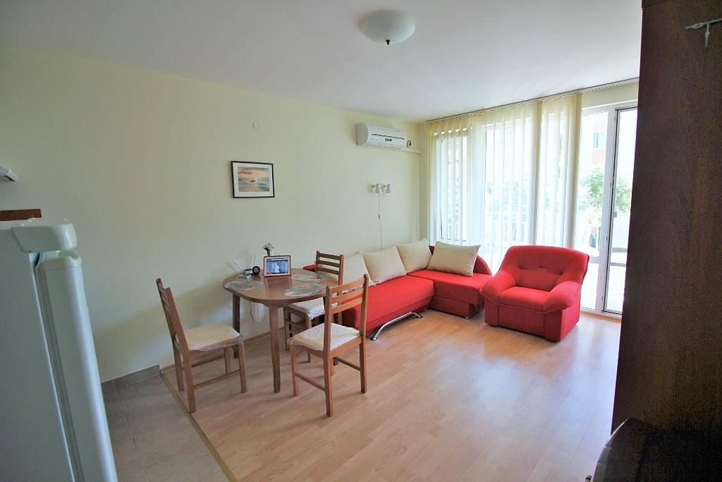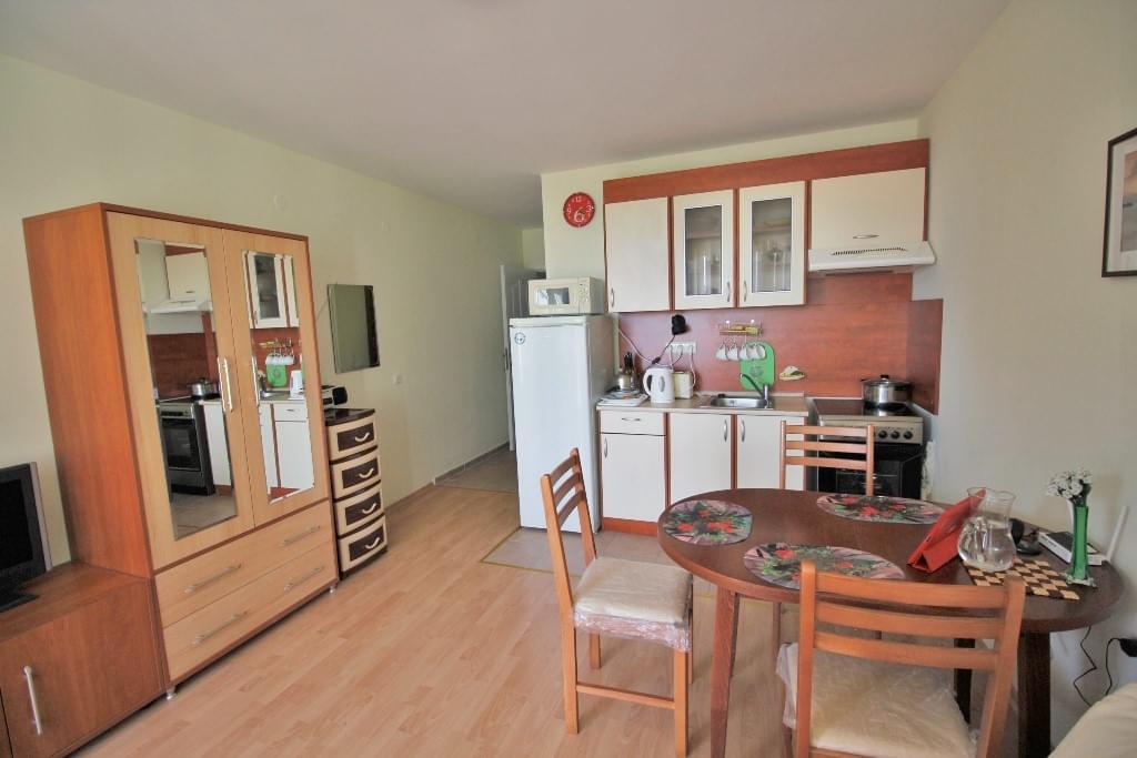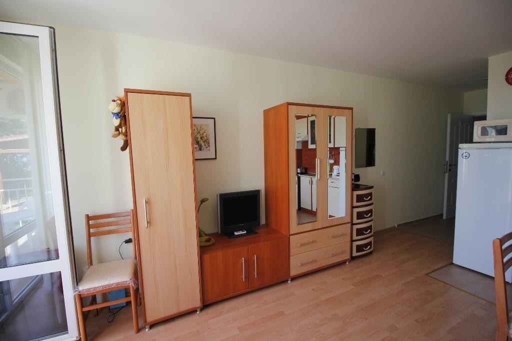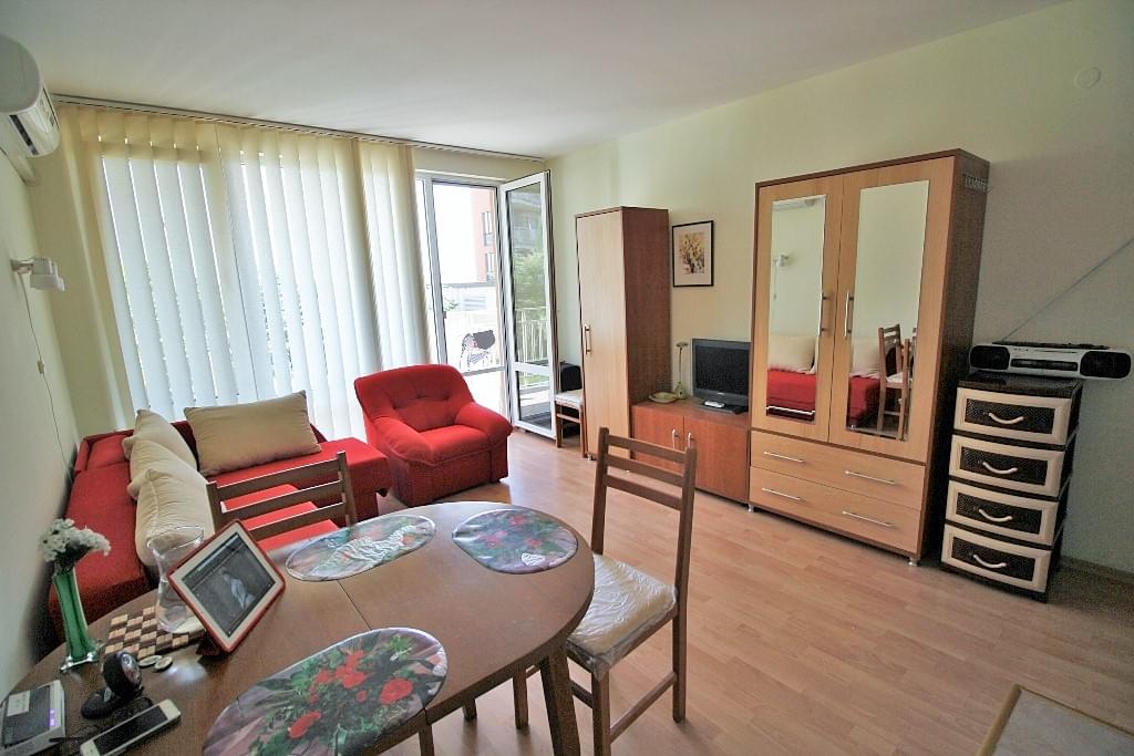Arco Real Estate offers for sale studio apartment in the holiday complex Imperial Fort Club located at the foot of the mountain between Saint Vlas and Elenite, on the Black Sea Coast of Bulgaria. The studio apartment is located on the first floor, with a total area of 40 sq.m. It is offered for sale with furniture and electric equipment, ready to move in!