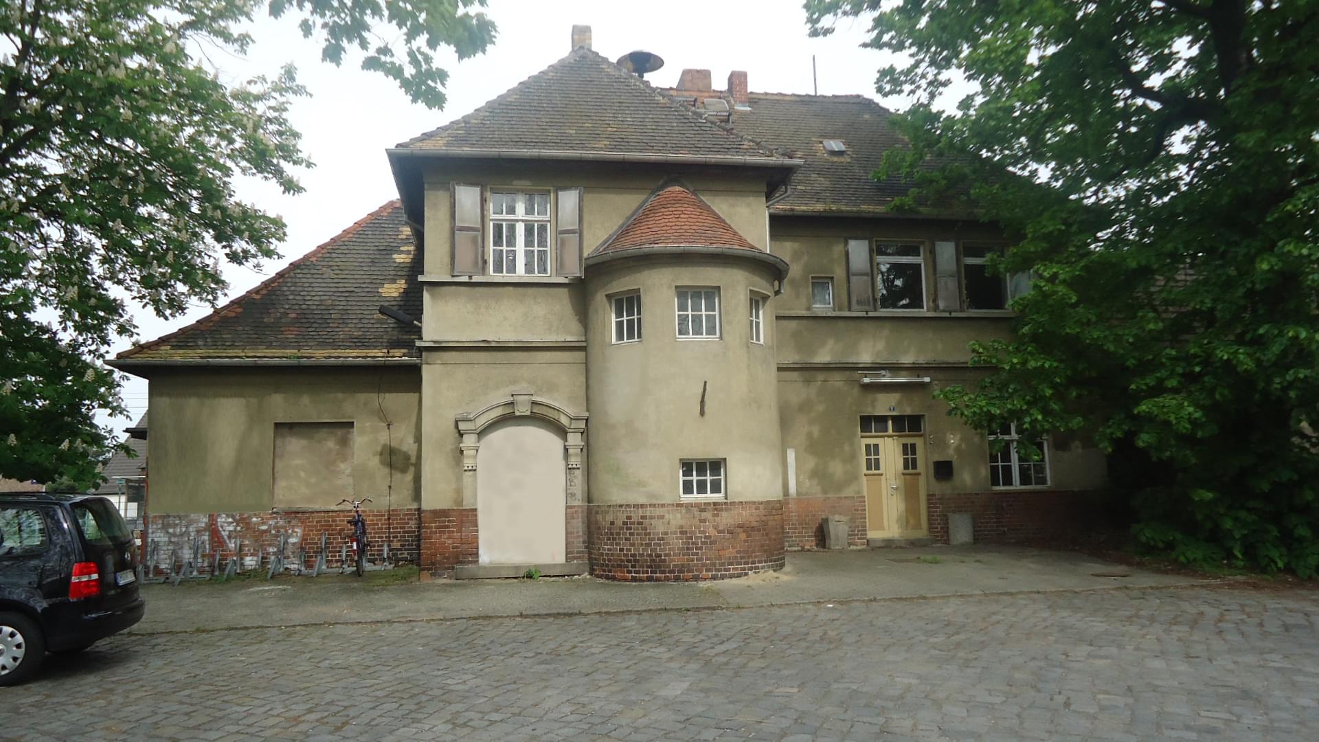 Building 1: office and residential building. Bj. Ca 1924. Former railway station. Electricity and water supply (new), basement. Repair work has begun (new plumbing fixtures and PVC windows, some have been already installed). In front of the building are parking lot, a bike stand and a bus stop.