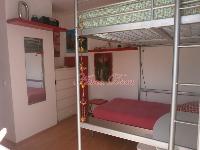 Продается квартира на первом этаже жилого здания в Ровине площадью 75 м2. Квартира состоит из двух спальных комнат, ванной комнаты, небольшого туалета, прихожей, где находится встроенный шкаф, кухня с обеденной зоной.