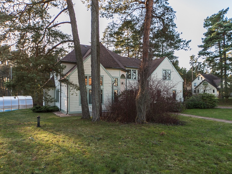 Меблированный двухэтажный дом общей площадью 499,4 кв. м (в том числе подвал 127 кв. м) с земельным участком (2095 кв. м) на опушке соснового леса, в тихом и ухоженном районе частной застройки недалеко от Балтэзерса.
