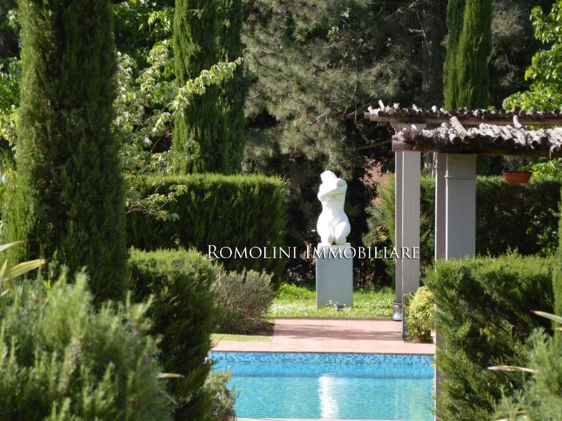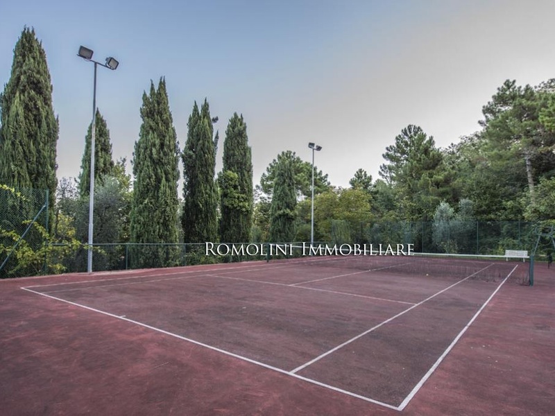 The property, surrounded by 22000 square metres of garden with 80 olive trees, is completed by an underground parking area of 400 square metres with a conditioned cellar for wine and oil storage and a room for cigar preservation.